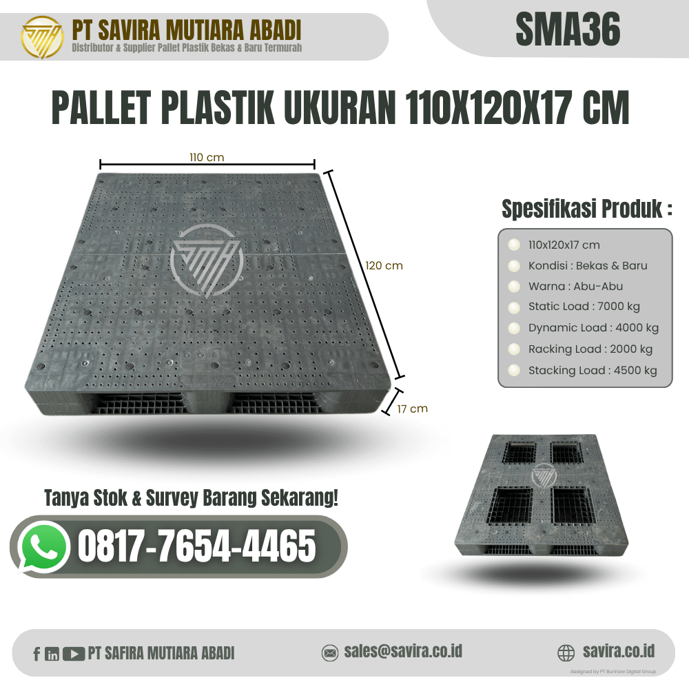 Pallet Plastik Bekas dan Baru Ukuran 110x120x17 cm - SMA36Pallet Plastik Bekas dan Baru Ukuran 110x120x17 cm – SMA36